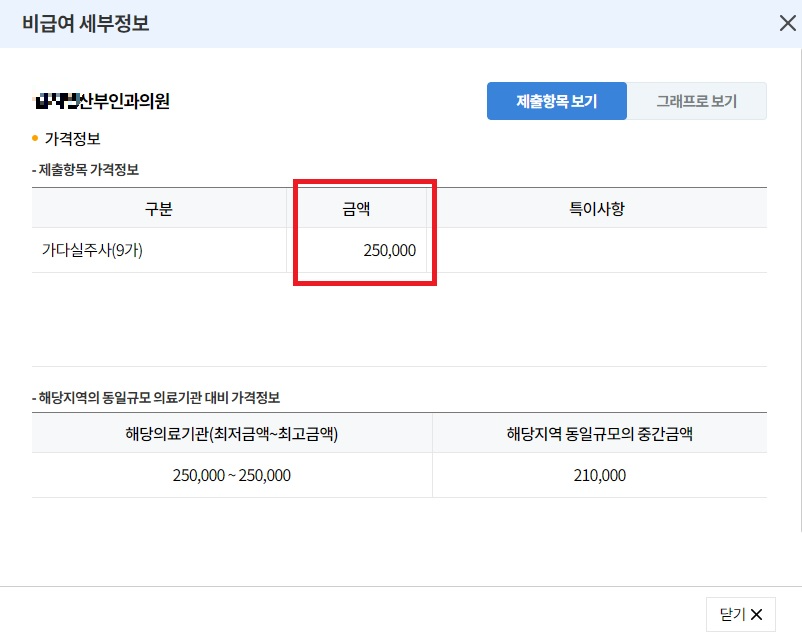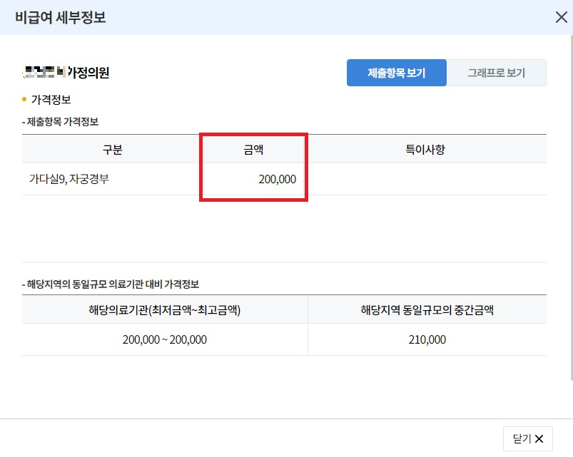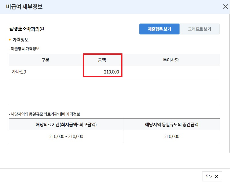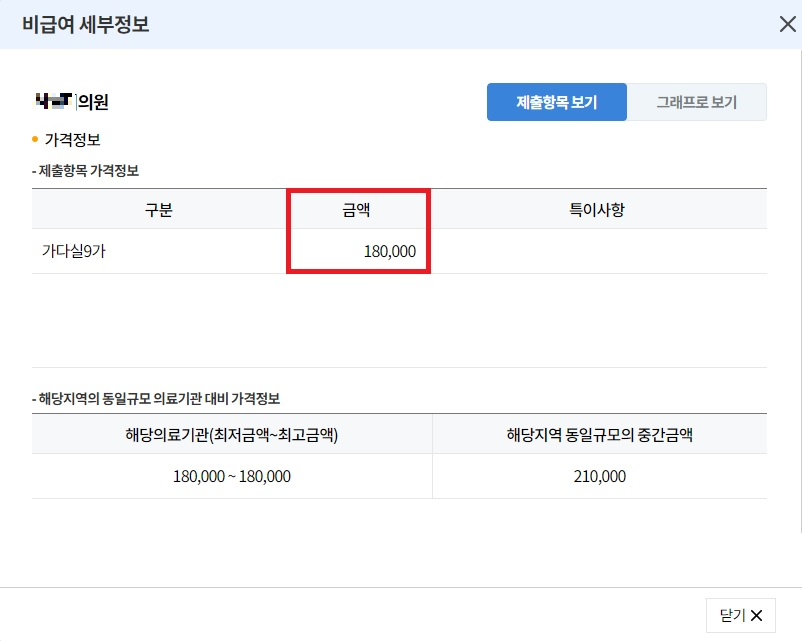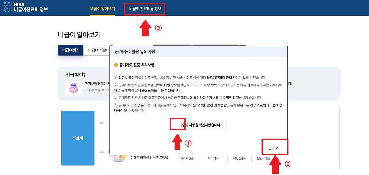 비급여진료비정보를 클릭해주면 새창이 열립니다.