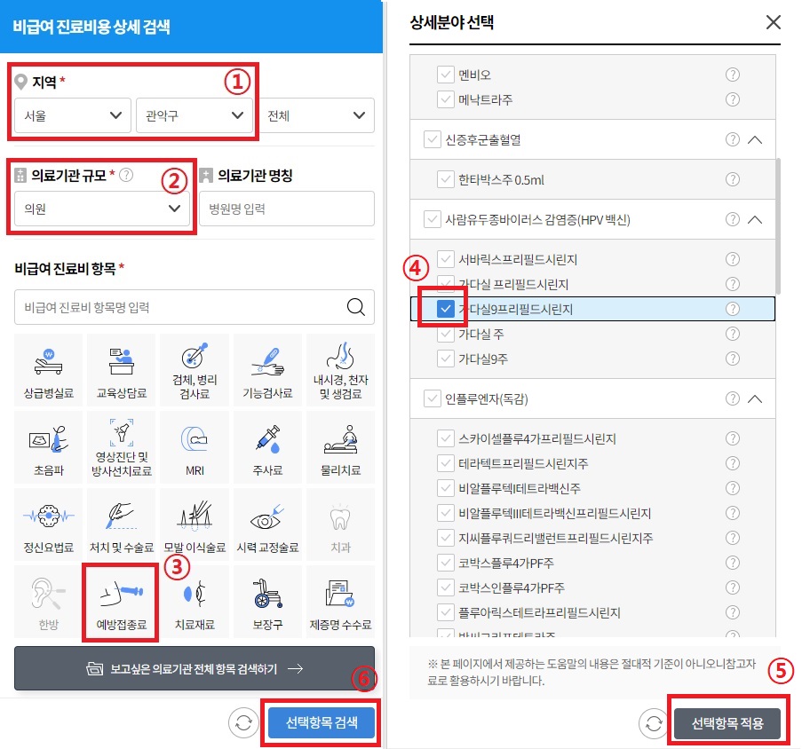 ↓ 심평원 홈페이지 접속해서 병원별 접종비용 확인하기